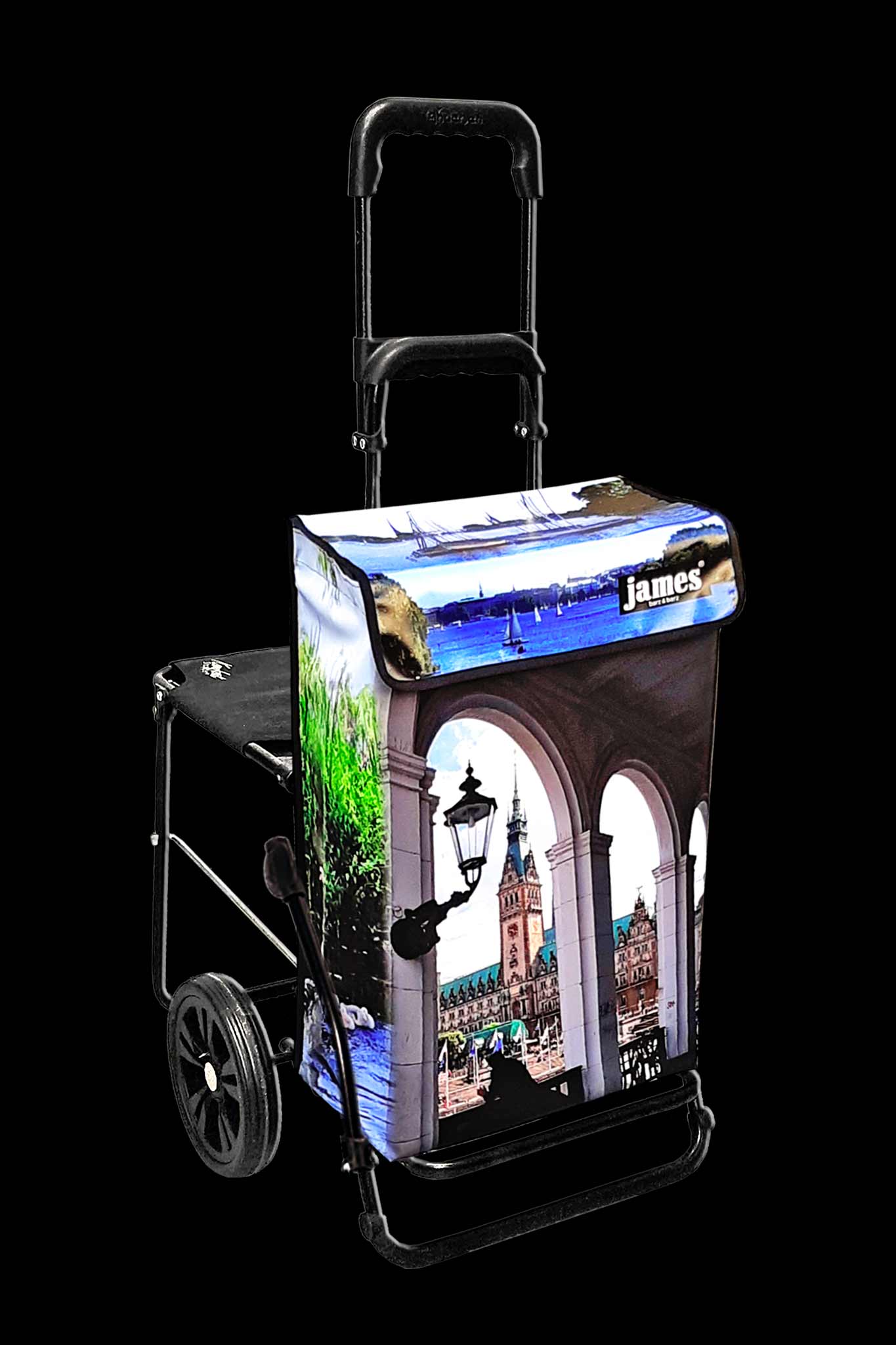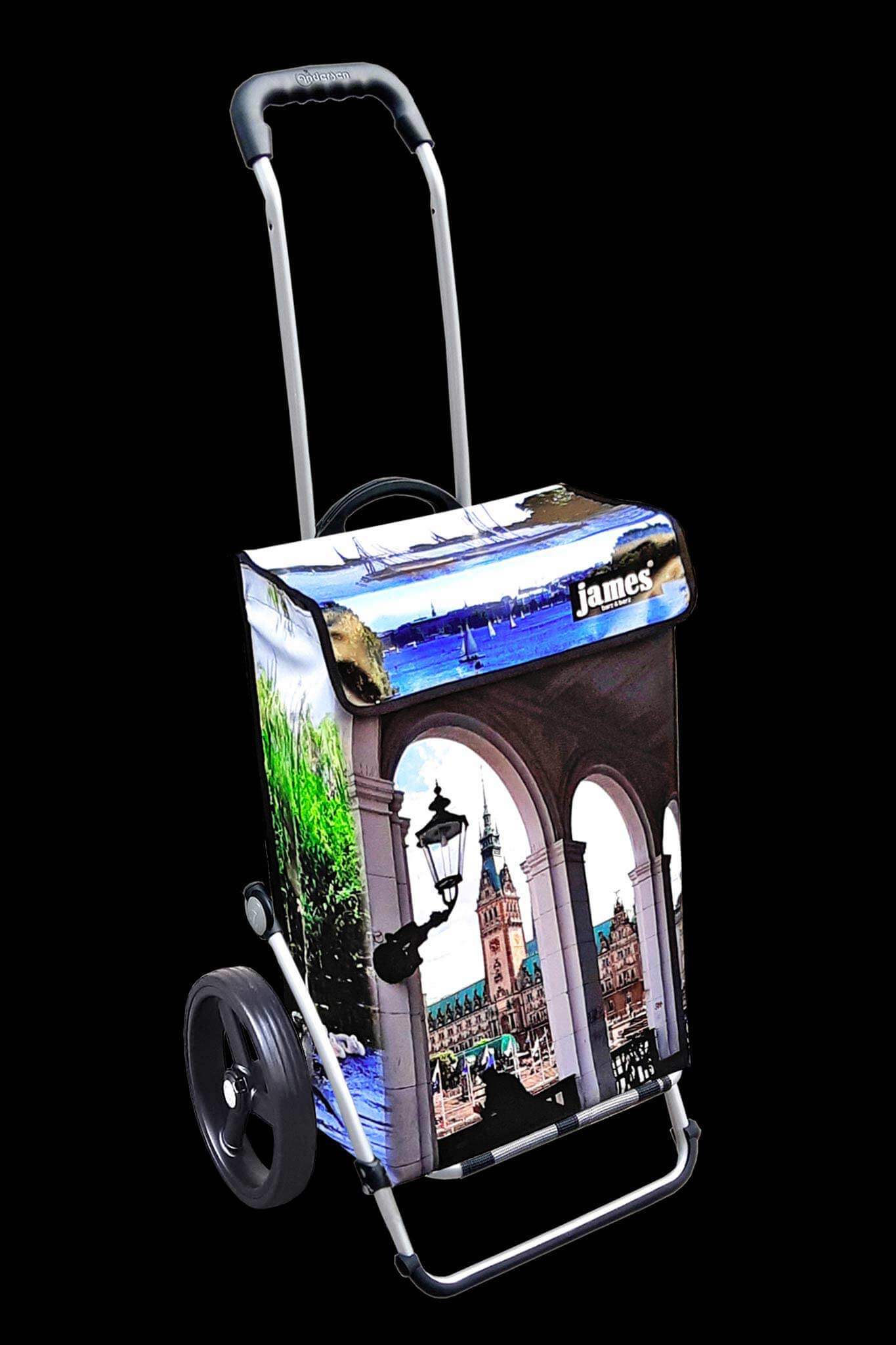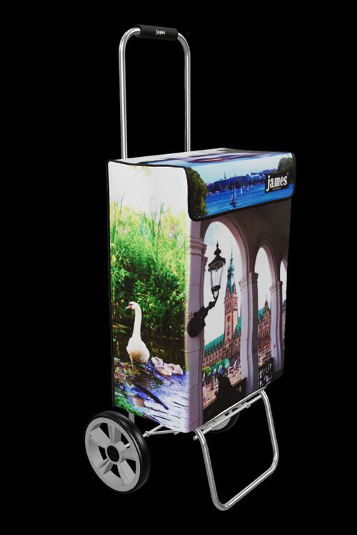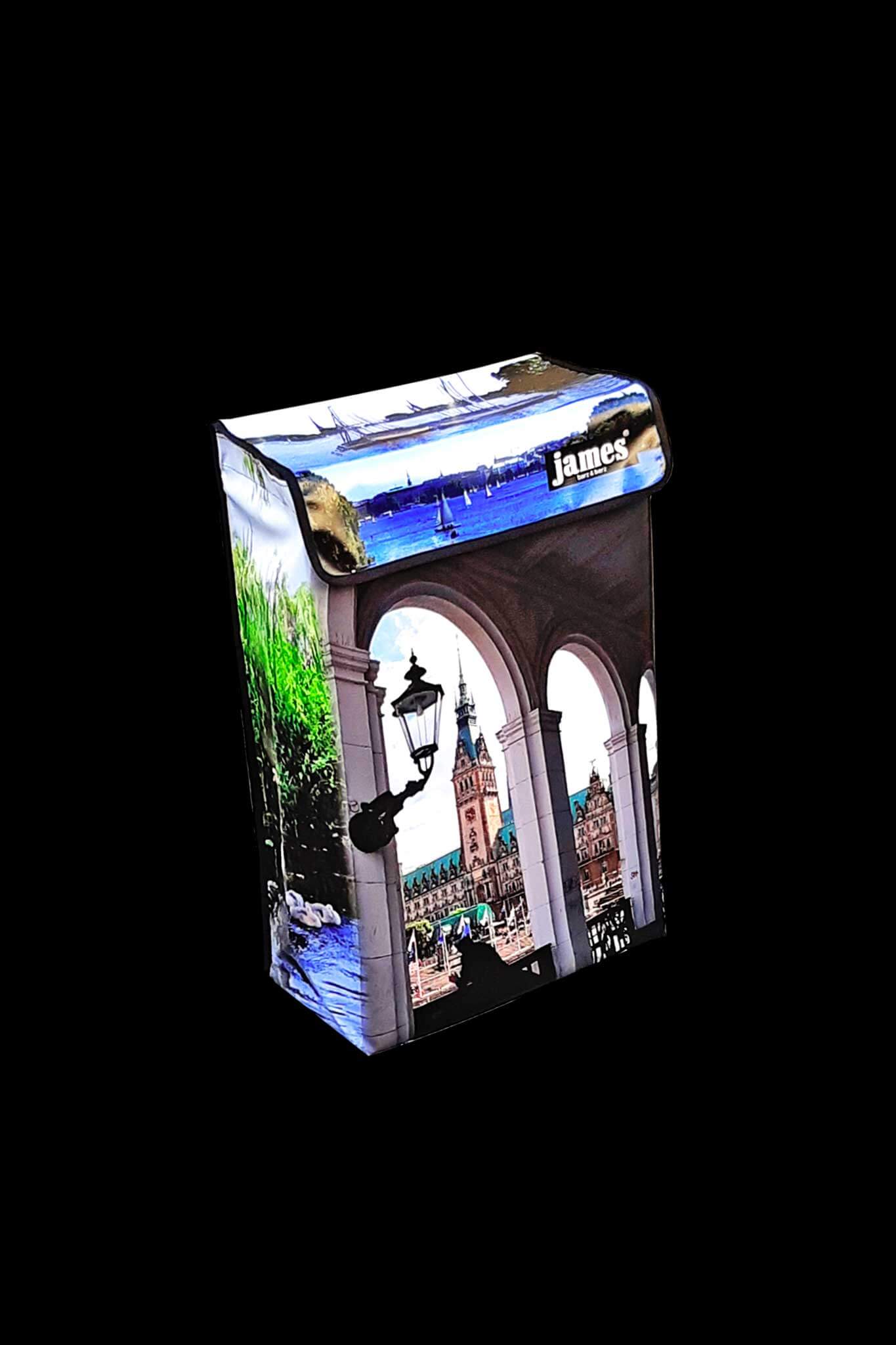 Für alle Hamburg- und Hamburger James-Fans der „Alster-James“ – bereits das dritte Hamburg-Motiv (nach „Hamburg-by-night“/Landungsbrücken und „Elphi“). Für viele ist er aber auch der Rathausplatz-James wegen dem frontalen Arkadenblick…Rundherum gibt es viel Alster, Schwäne und Kutter…