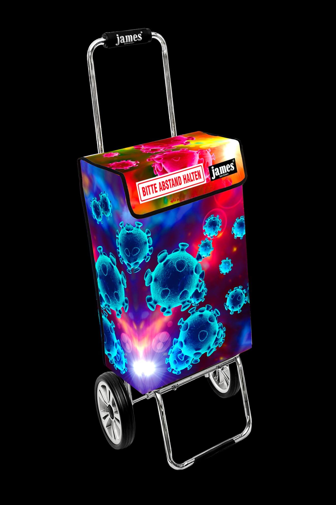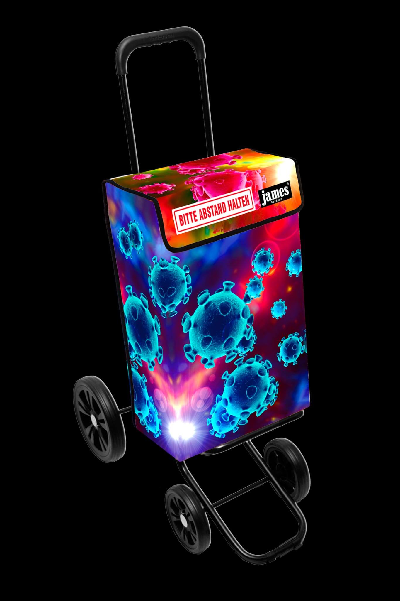 Der Corona-Distance-James fordert freundlich und humorvoll auf zum respektvollen Mindest-Abstand beim Einkaufen und erinnert auch unterwegs an das weltweite Gebot in Zeiten der Pandemie.