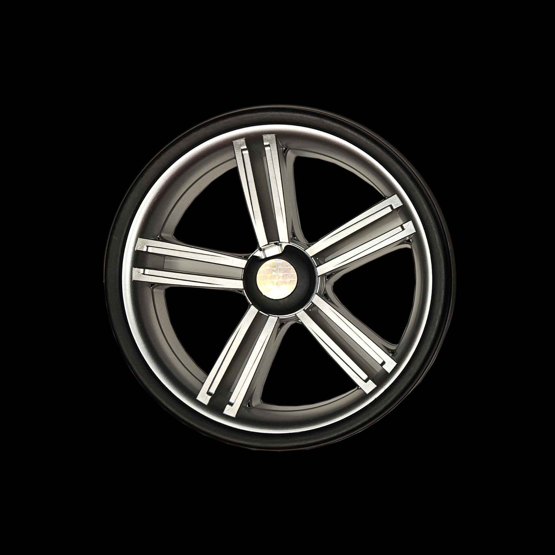- 25cm grosse, superleichte und elegante 3-Speichen-Räder aus Kunststoff.