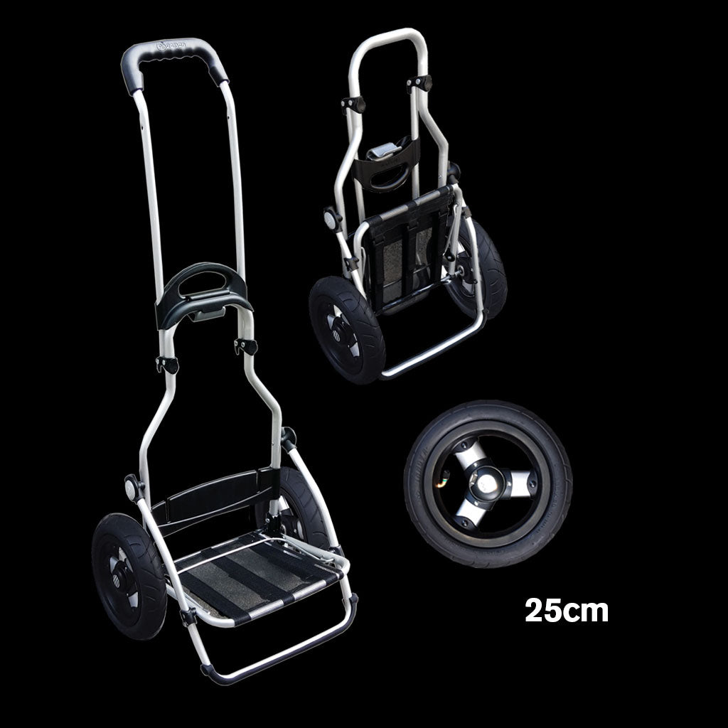 Gesamtgewicht inkl. Box: 3,7kg - 25cm oder sogar 29cm* grosse kugelgelagerte Lufträder; Fahrgefühl: Der starke, bodenständige Partner für alle, die gerne "was in der Hand" haben und besonders für Fahrradfans auf kleinen oder grossen Ausflügen über Stock und Stein...