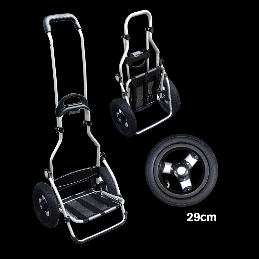 Fahrgefühl: Das angenehme Fliegengewicht für jeden Tag, ob zu Fuss oder auch mal mit Fahrrad. Gesamtgewicht inkl. Box: 3,5kg - 25 oder sogar 29cm* grosse kugelgelagerte Leichträder aus schaumgepolstertem Kunststoff; Fahrgefühl: Der komfortable, wendige Firstclass-Butler für jeden Einsatz zu Fuss, aber auch für häufige Fahrradfahrten in der Stadt.