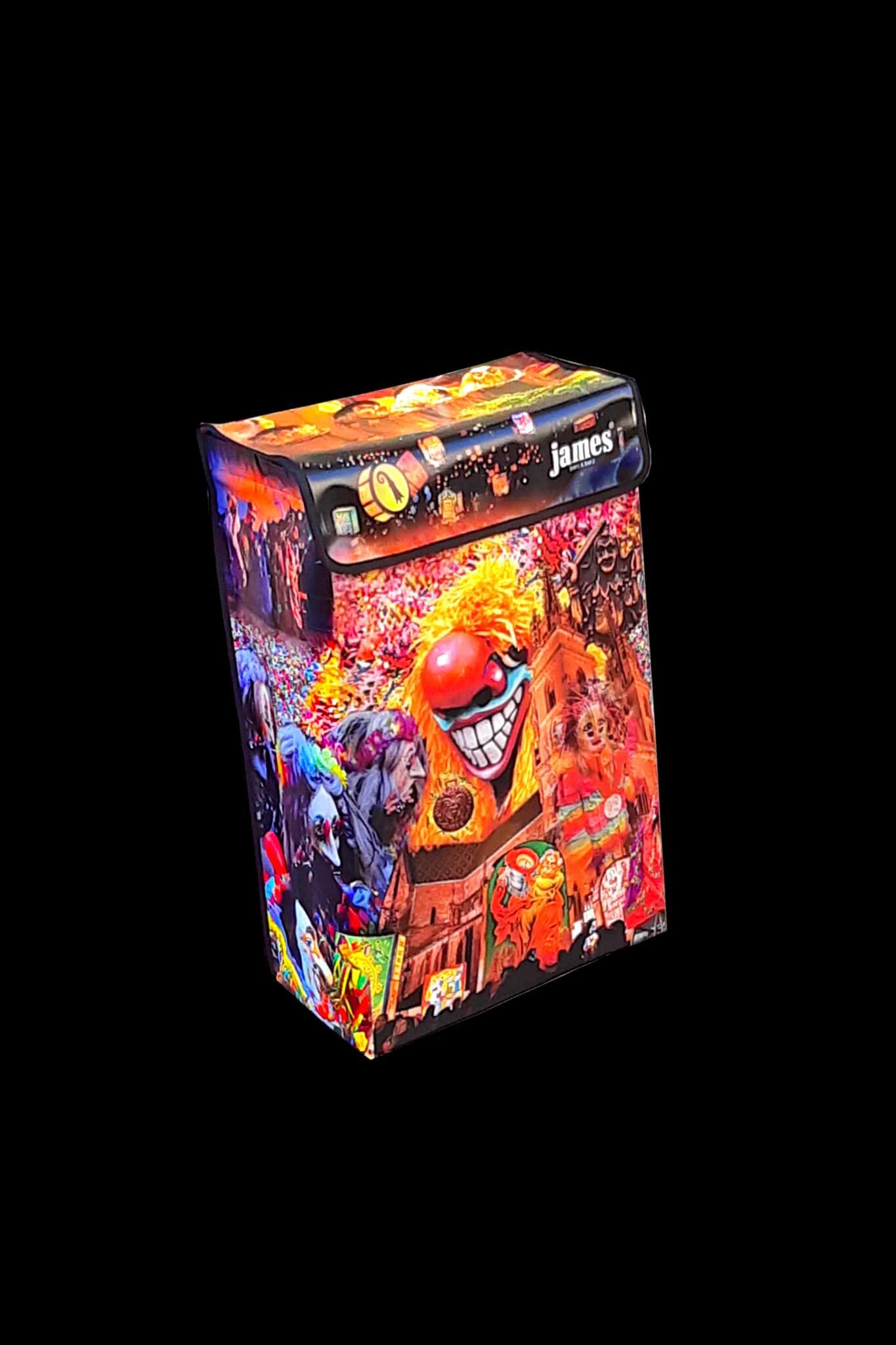Traumartige Mix-Collage aus der Basler Fasnacht: Vom grellen Waggis-Grinsen bis zum verträumten Harlequin, von alten Tanten bis zu gestrandeten Trommeln, vom Morgenstraich bis zum Räppli-Meer, von Laternen-Parade bis zum einsamen „Gässle“… der James für alle Fasnacht-Fans, auch unter’m Jahr!