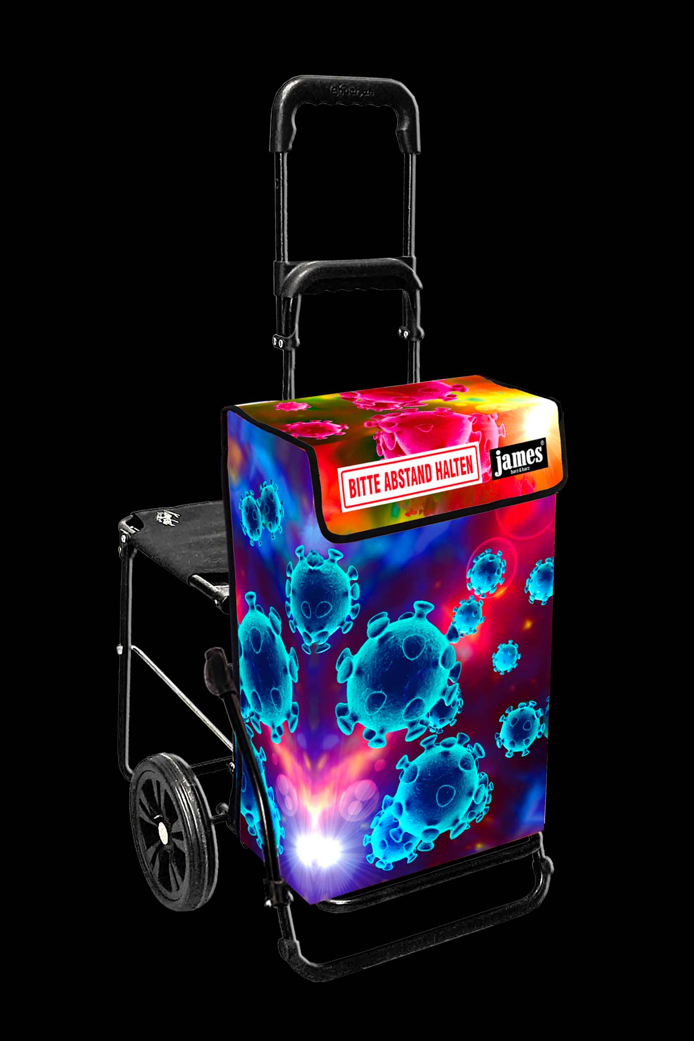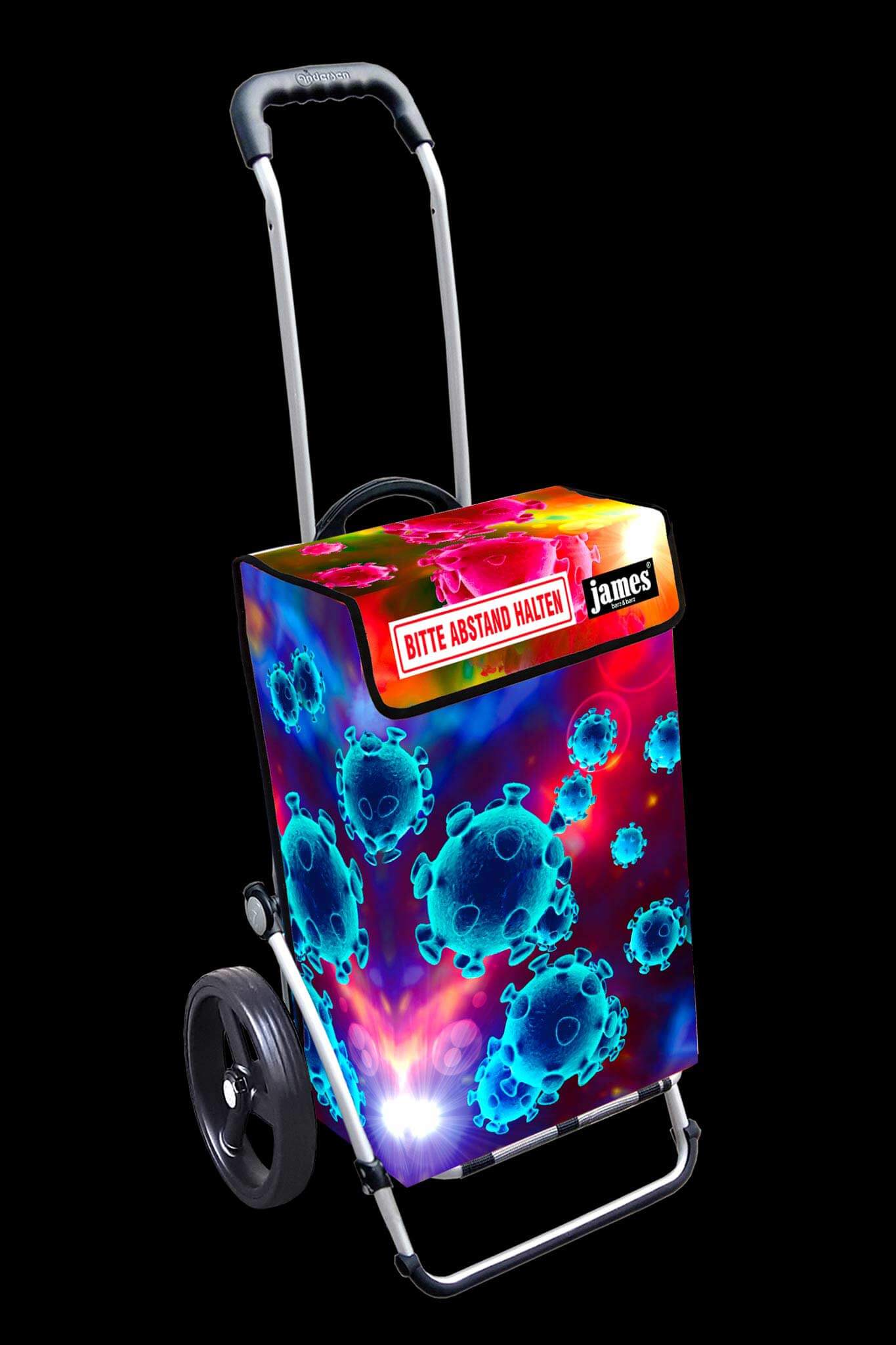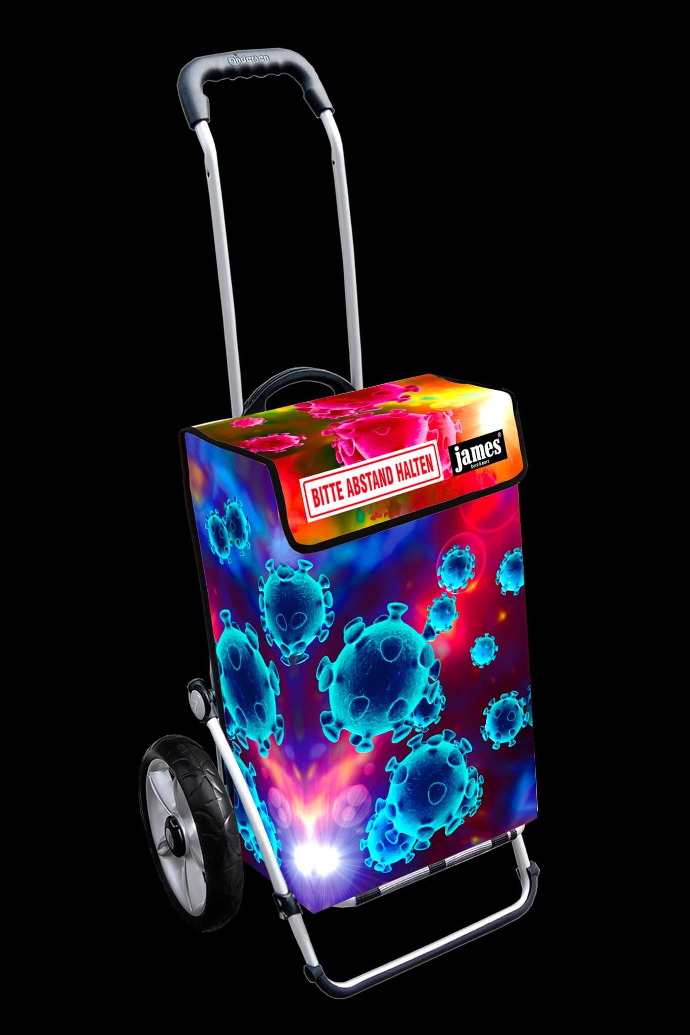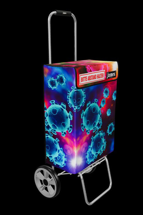 Der Corona-Distance-James fordert freundlich und humorvoll auf zum respektvollen Mindest-Abstand beim Einkaufen und erinnert auch unterwegs an das weltweite Gebot in Zeiten der Pandemie.