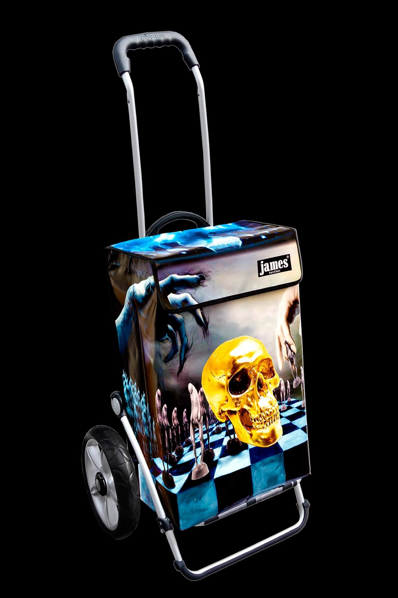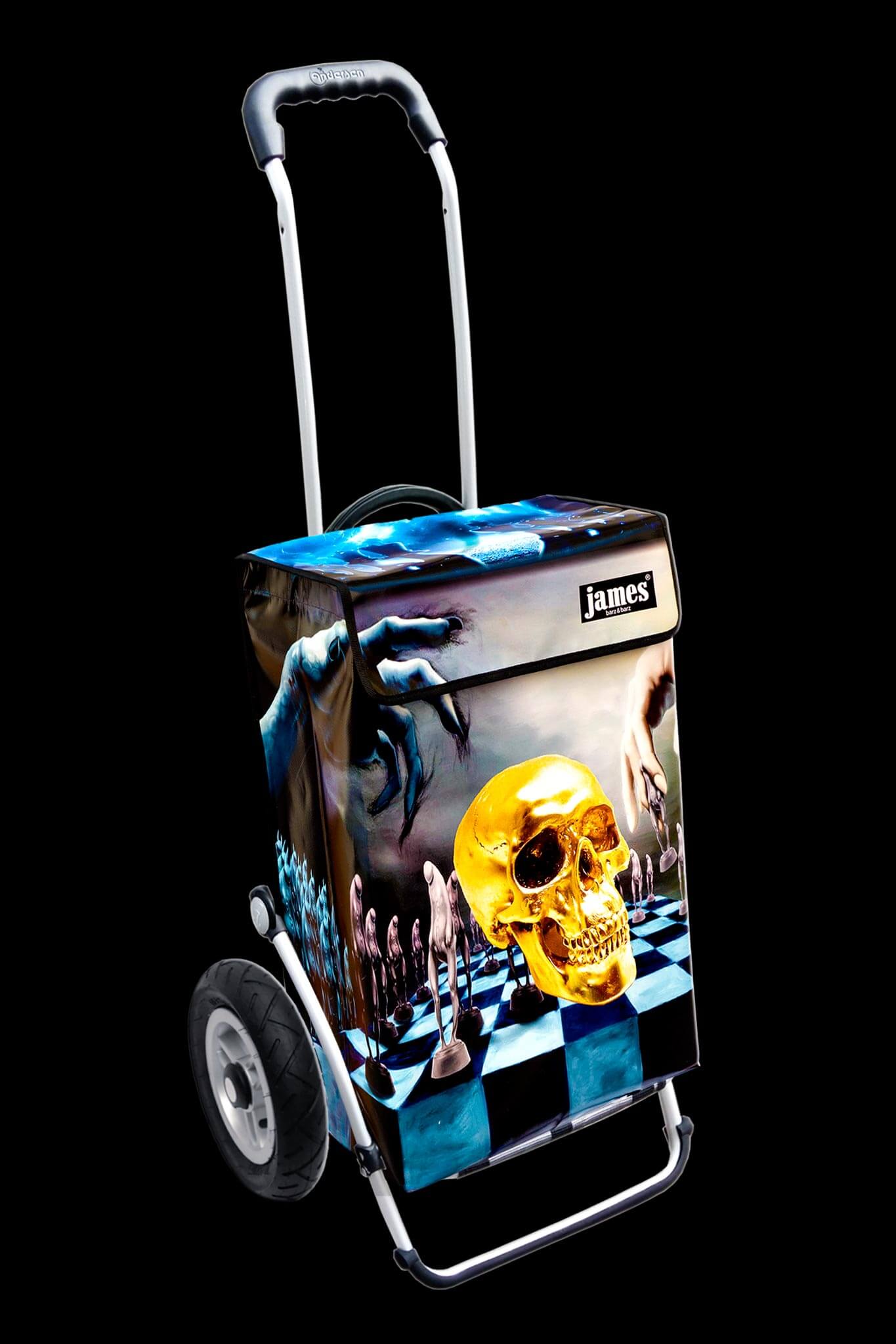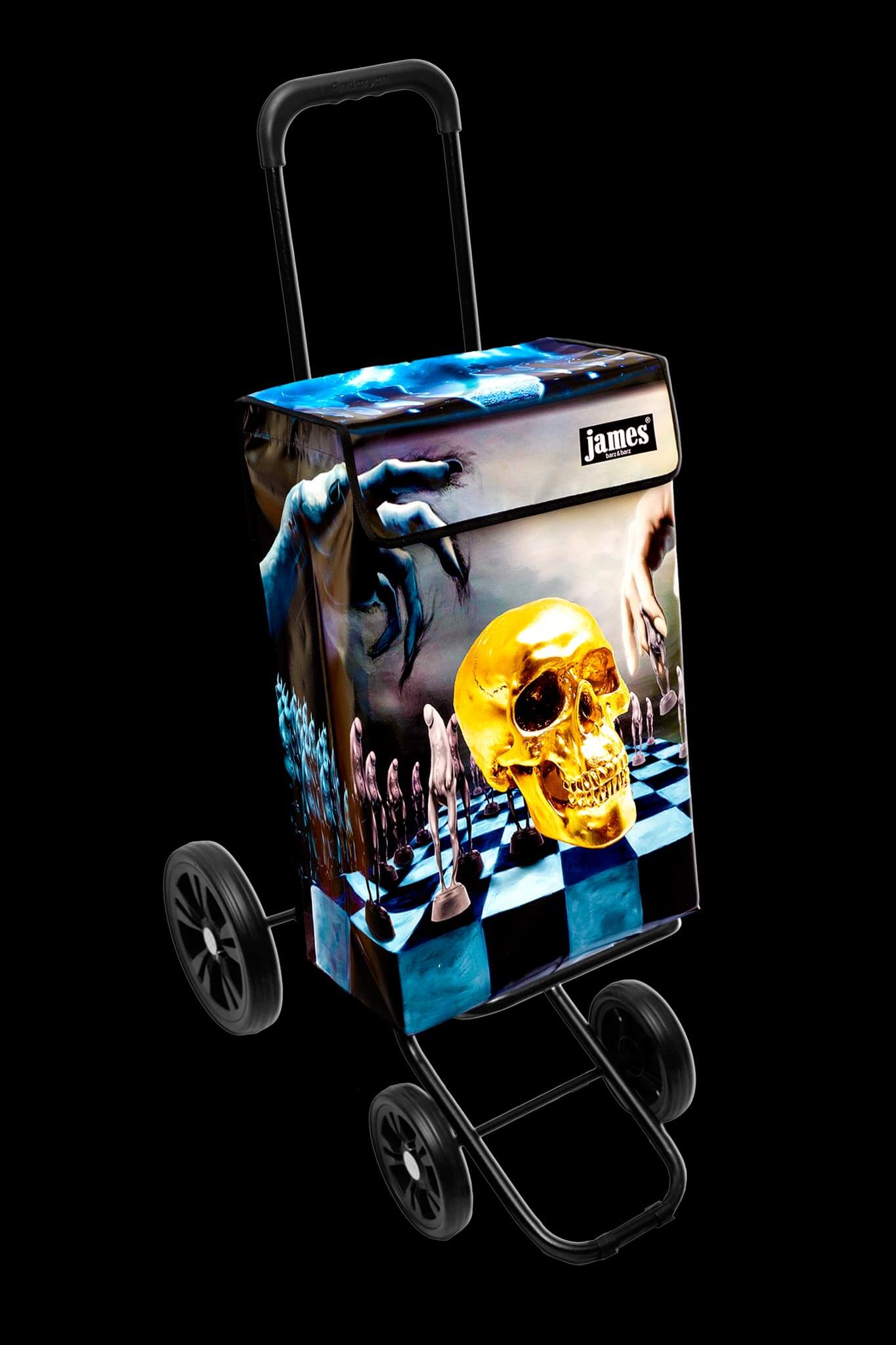 Der Hamlet - James ist wahrscheinlich der einzige Einkaufswagen der Welt mit einem Totenkopf drauf! Für Hamlet'sche Denker und Existentialisten, Schachstrategen und black waver, echt gothic, gruftig, punk, abgefahren!