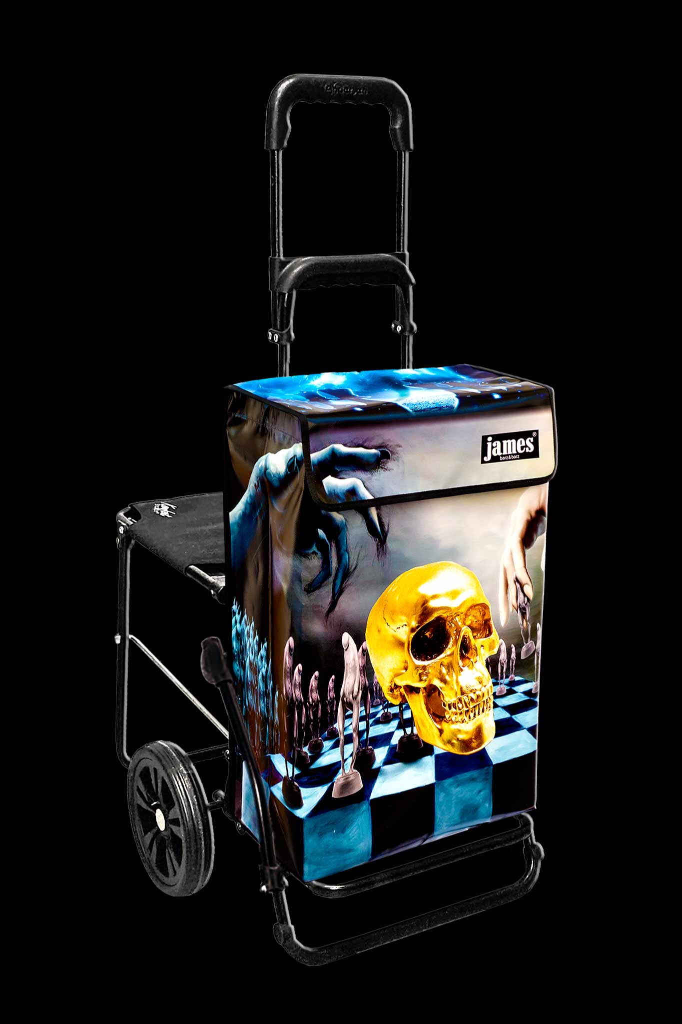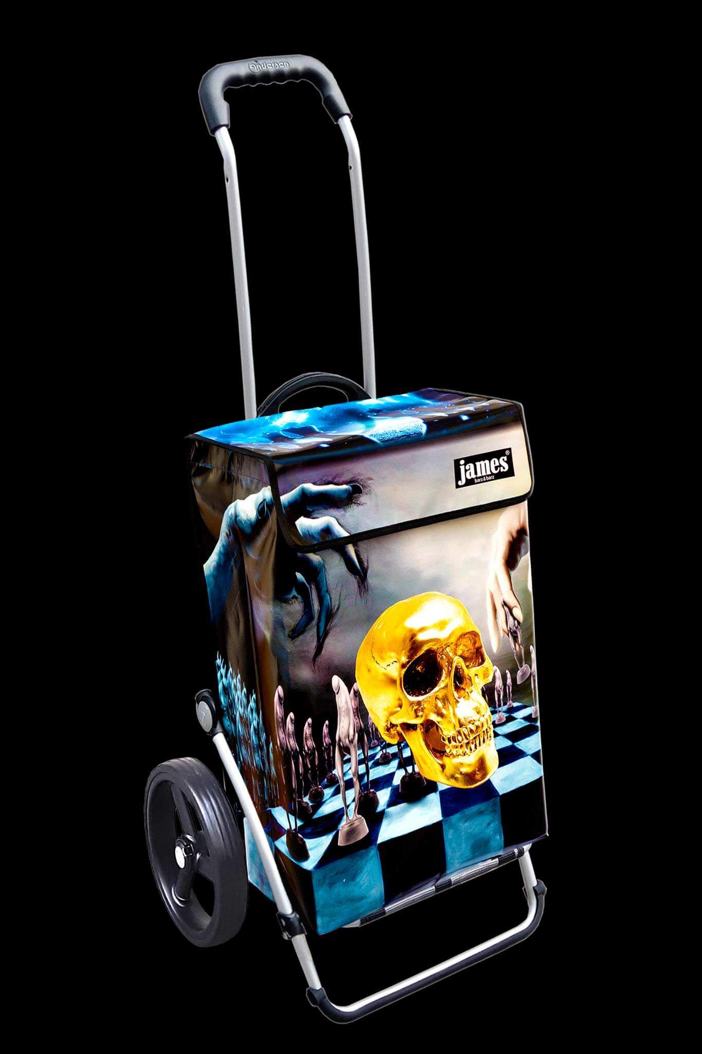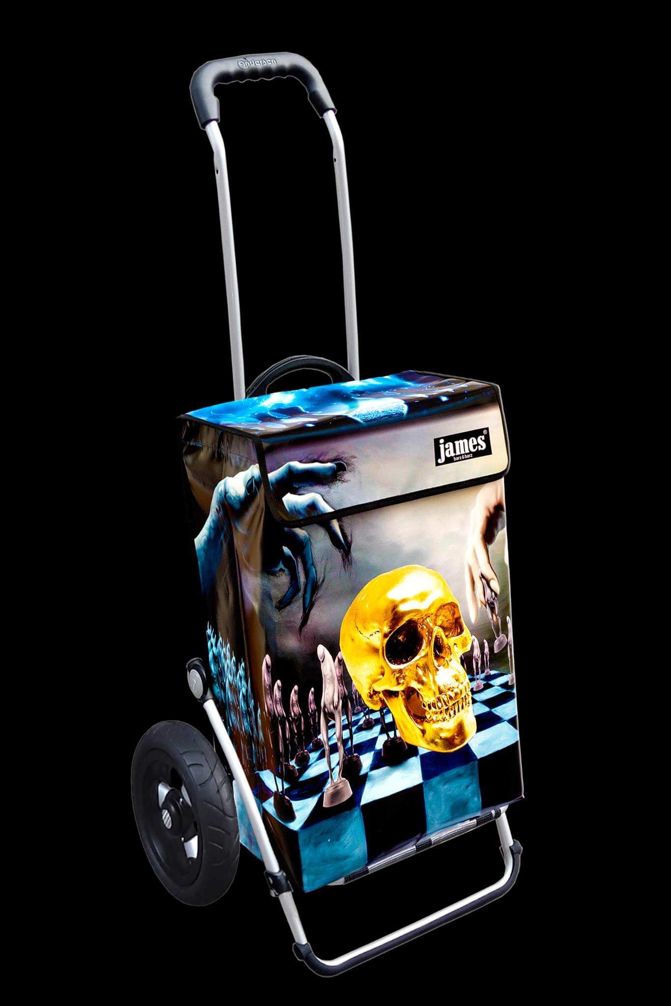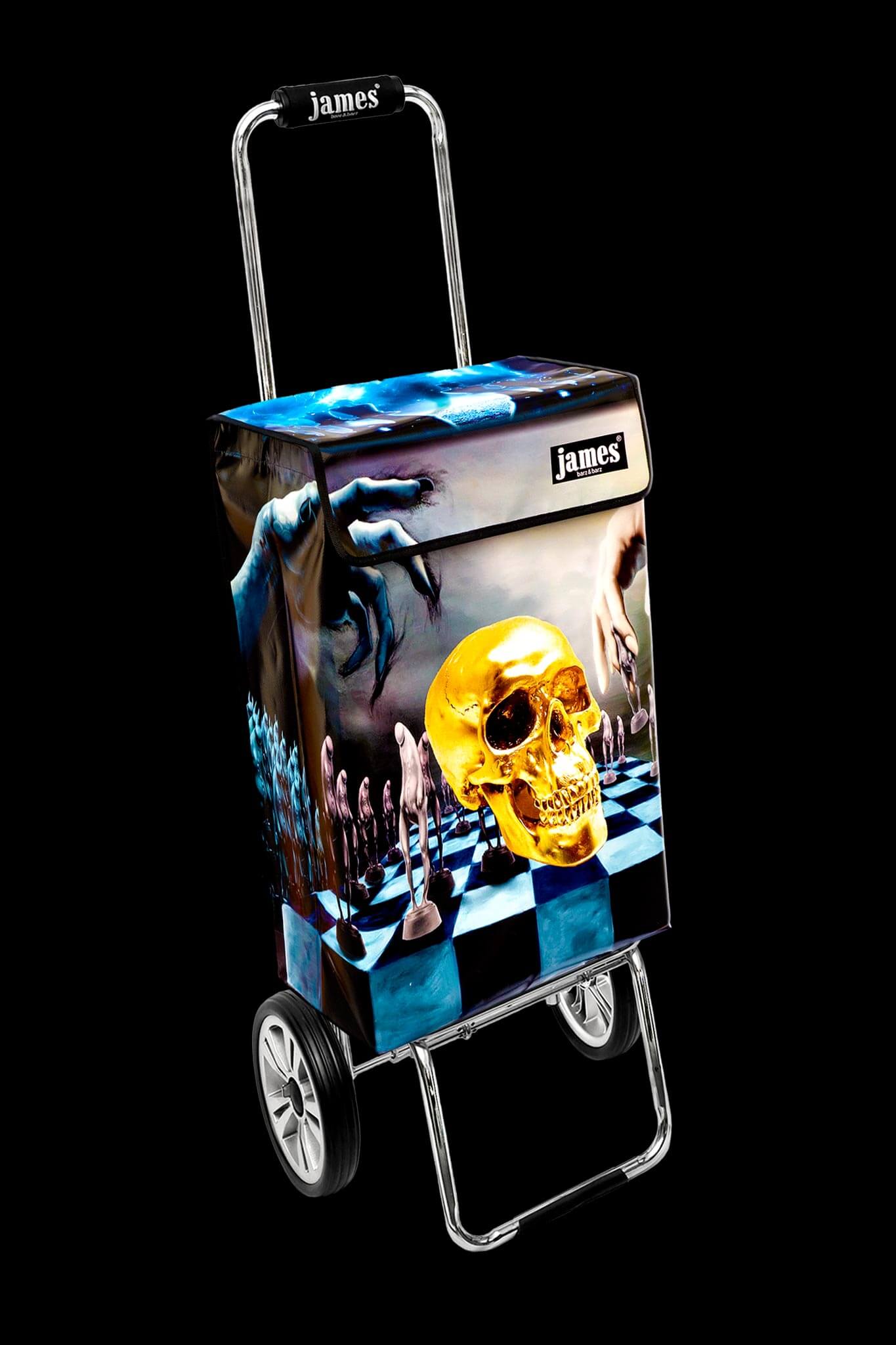 Der Hamlet - James ist wahrscheinlich der einzige Einkaufswagen der Welt mit einem Totenkopf drauf! Für Hamlet'sche Denker und Existentialisten, Schachstrategen und black waver, echt gothic, gruftig, punk, abgefahren!