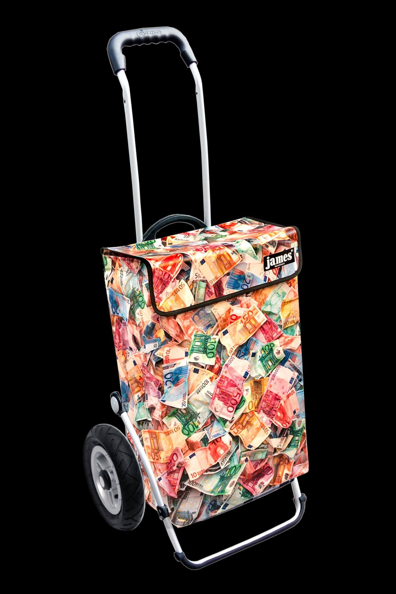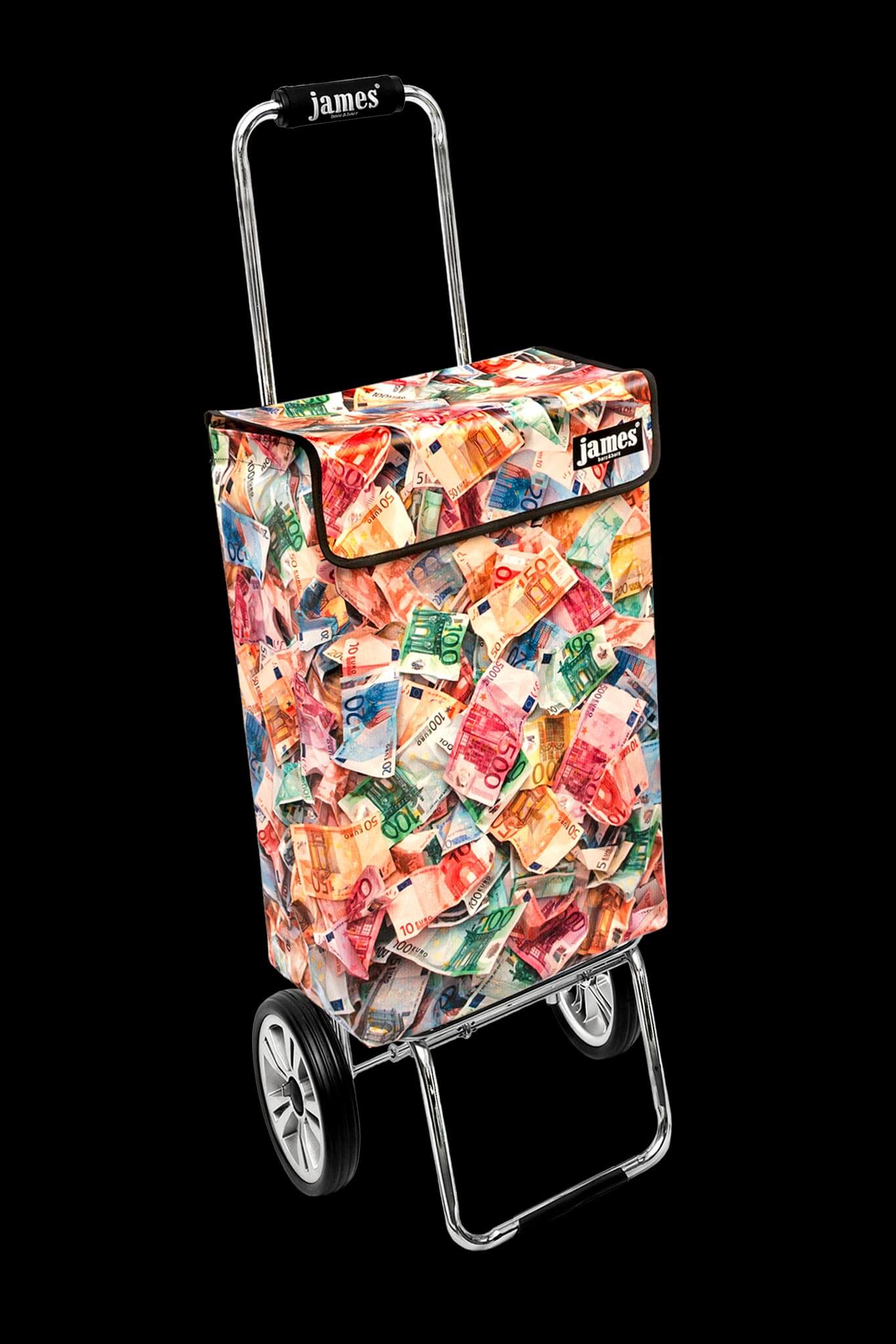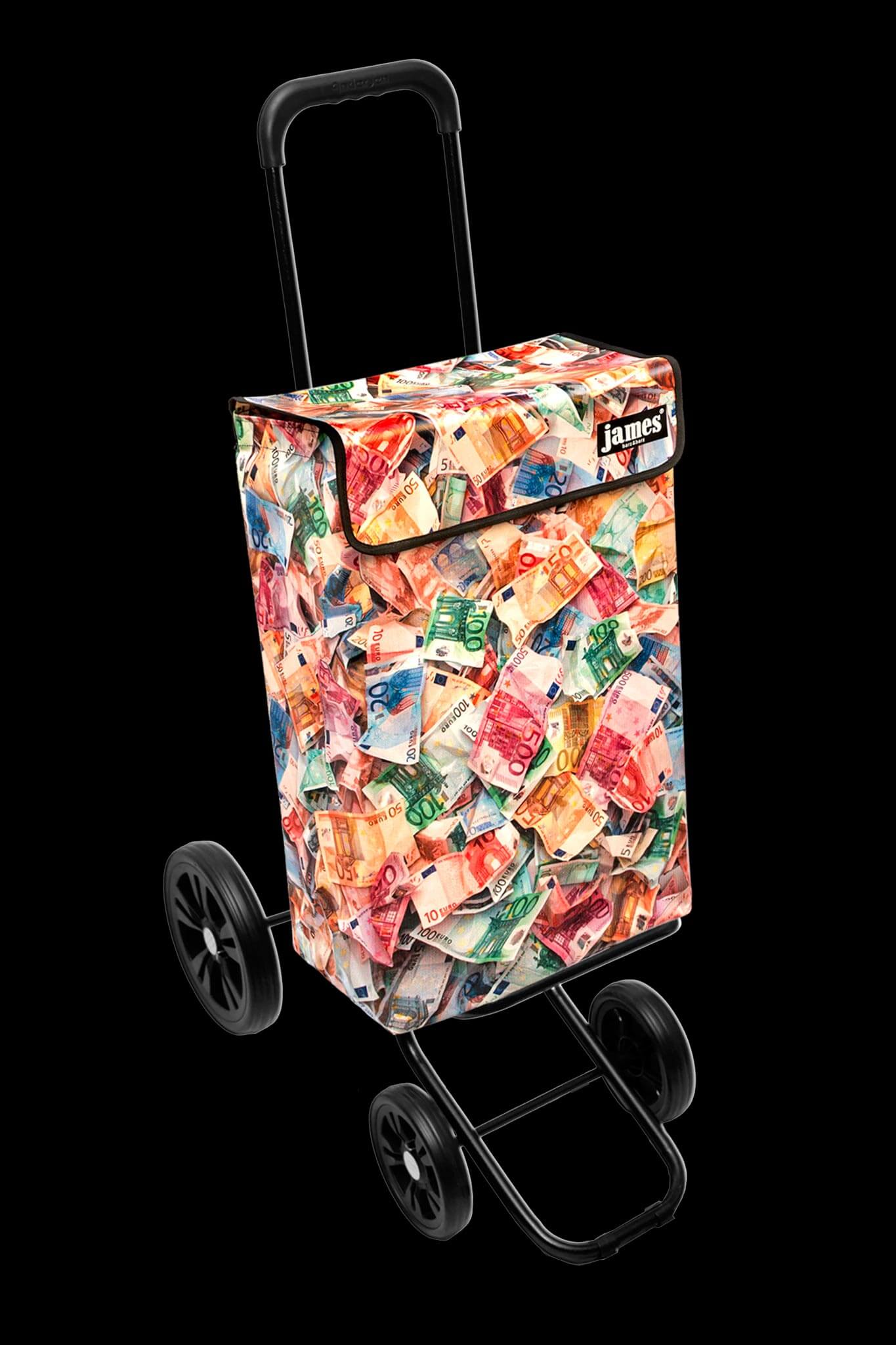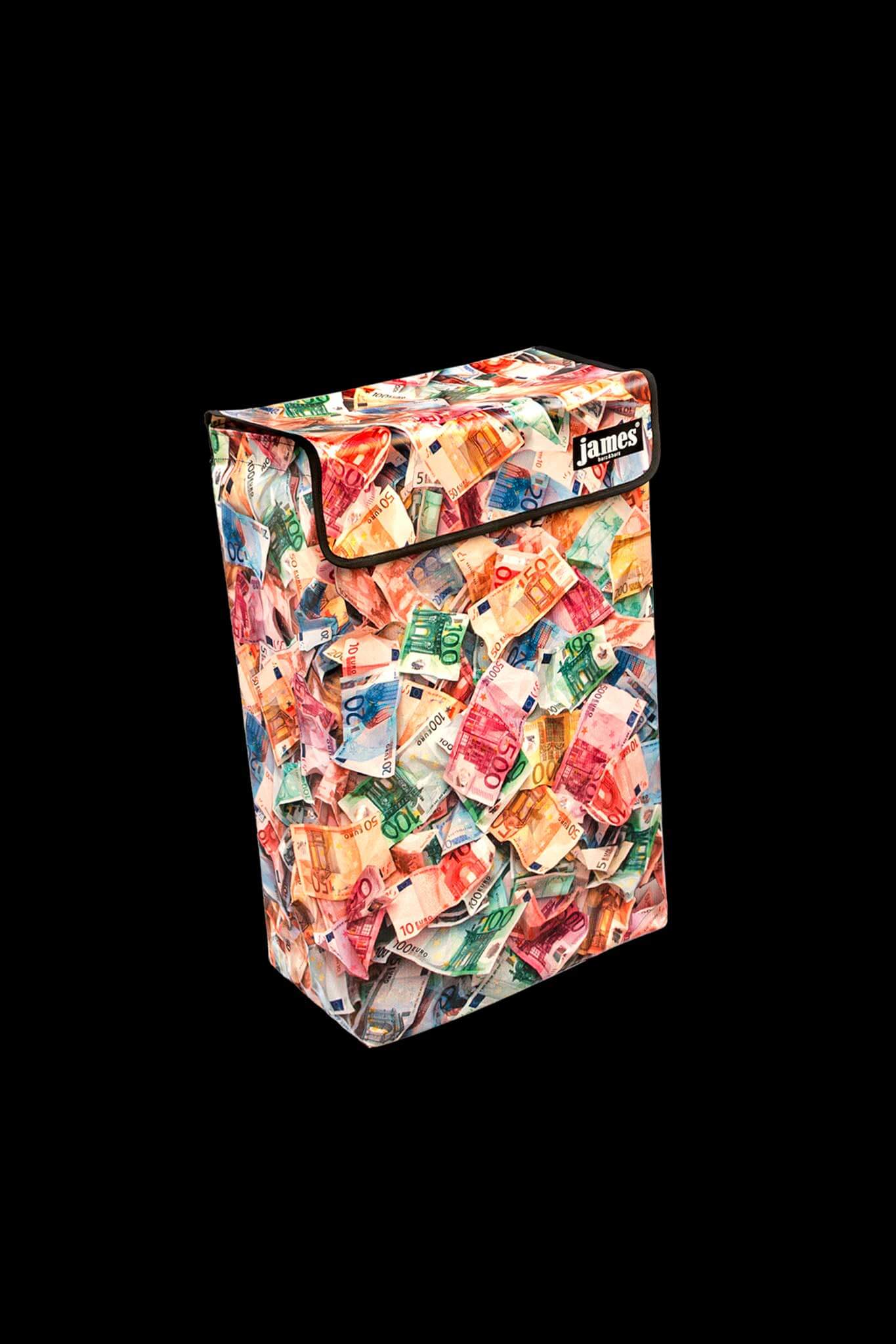 Der Money-James erfüllt deine heimlichsten Wünsche: endlich einmal mit einem Geldkoffer herumlaufen! Für die Vorlage habe ich im Hinterzimmer meiner Bank leihweise 12'000 Euro genüsslich zerknüllt, damit sie schön plastisch aussehen - beim Kontrollzählen gab es blanke Verzweiflung, denn die Zählmaschine verweigerte das knittrige Papier...