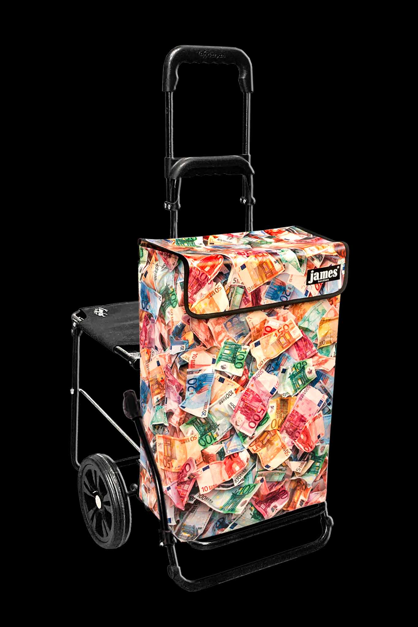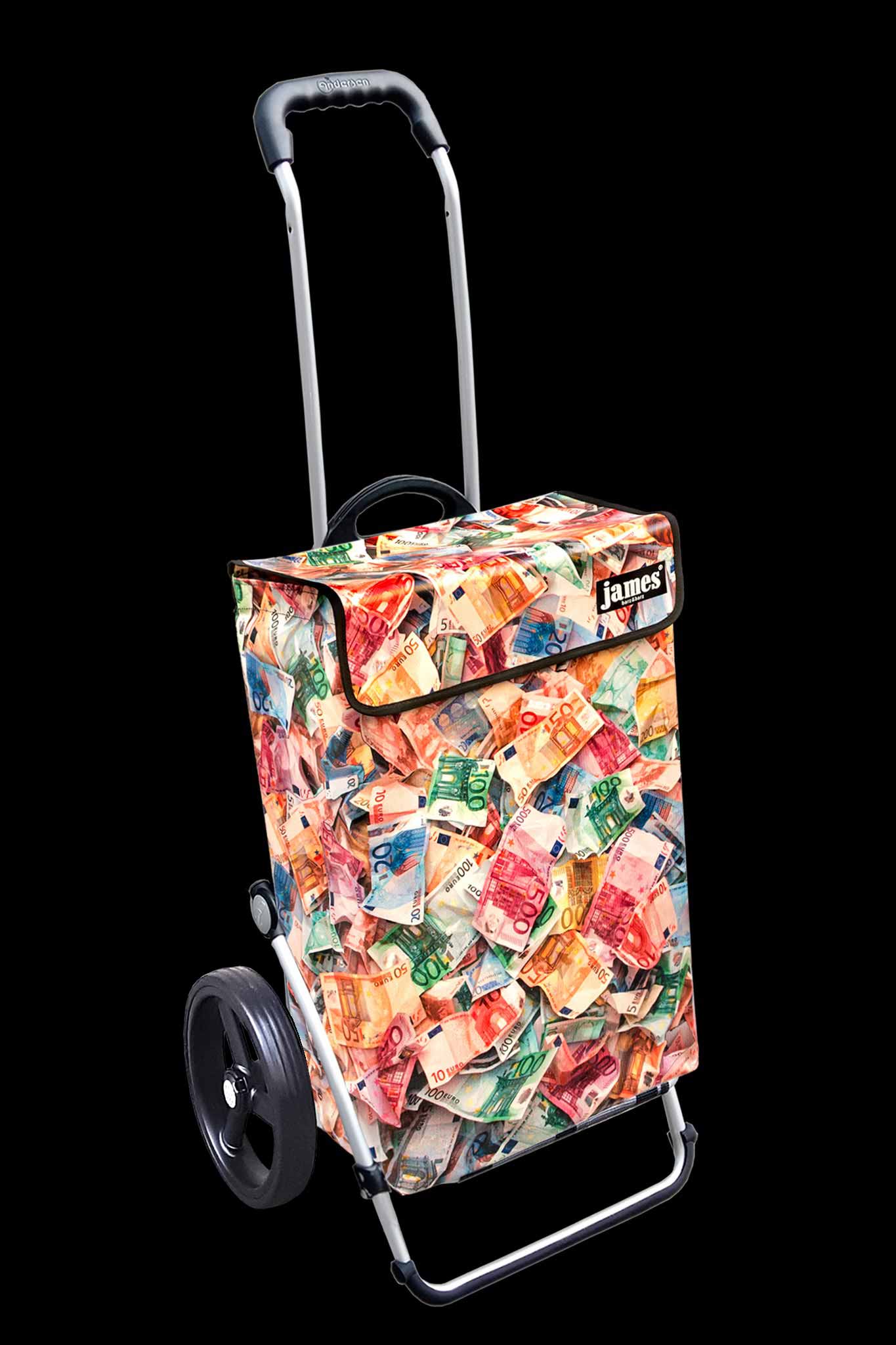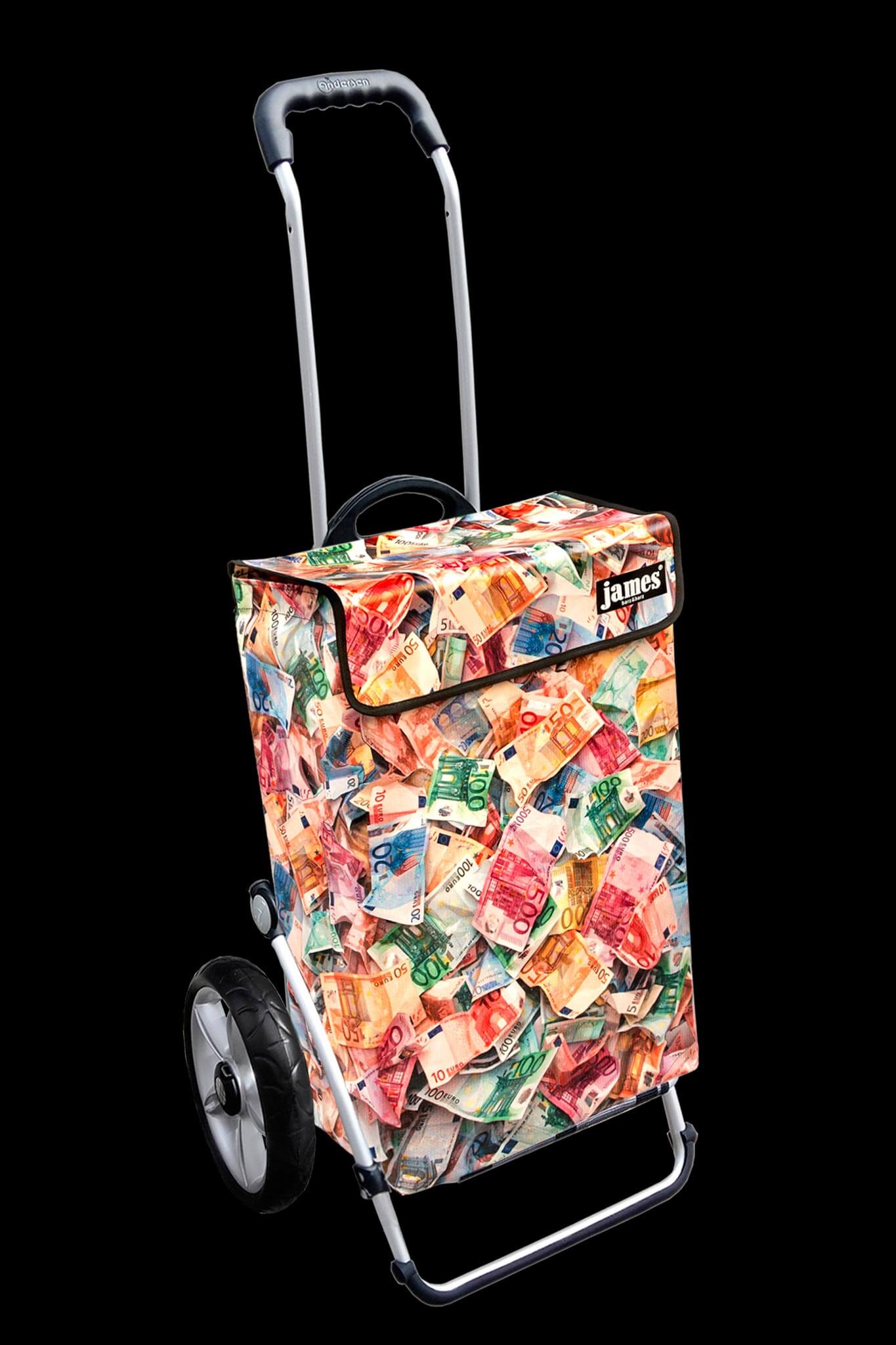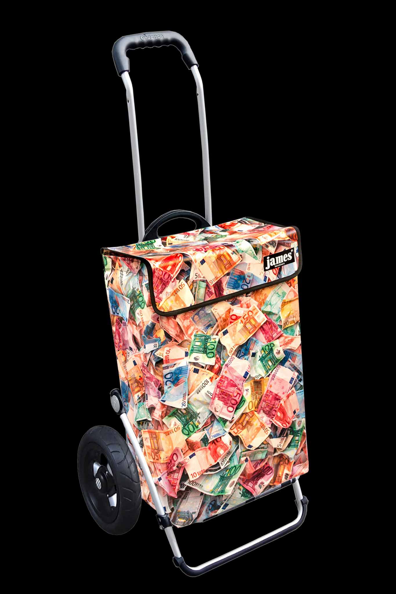 Der Money-James erfüllt deine heimlichsten Wünsche: endlich einmal mit einem Geldkoffer herumlaufen! Für die Vorlage habe ich im Hinterzimmer meiner Bank leihweise 12'000 Euro genüsslich zerknüllt, damit sie schön plastisch aussehen - beim Kontrollzählen gab es blanke Verzweiflung, denn die Zählmaschine verweigerte das knittrige Papier...